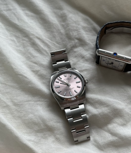 34사이즈가 과하지 않으면서도 적당한 두께감이라 데일리로 차기에도 부담이 없어요