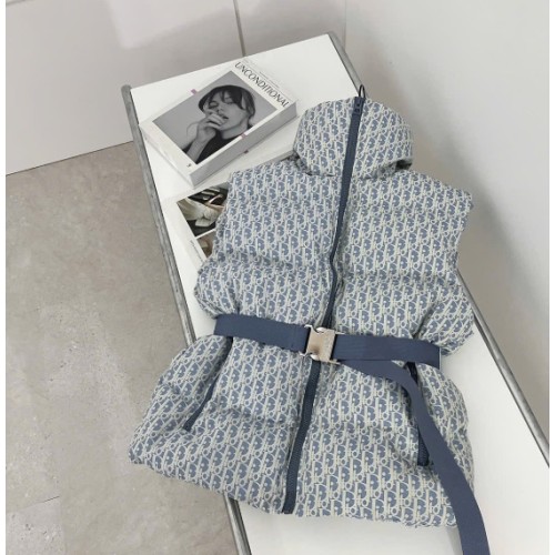 • 디올 벨트 푸퍼 베스트 블루 & 화이트 조끼 패딩
