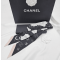 샤넬 CC 로고 까멜리아 실크 트윌리 스카프 블랙 방도 AA9573